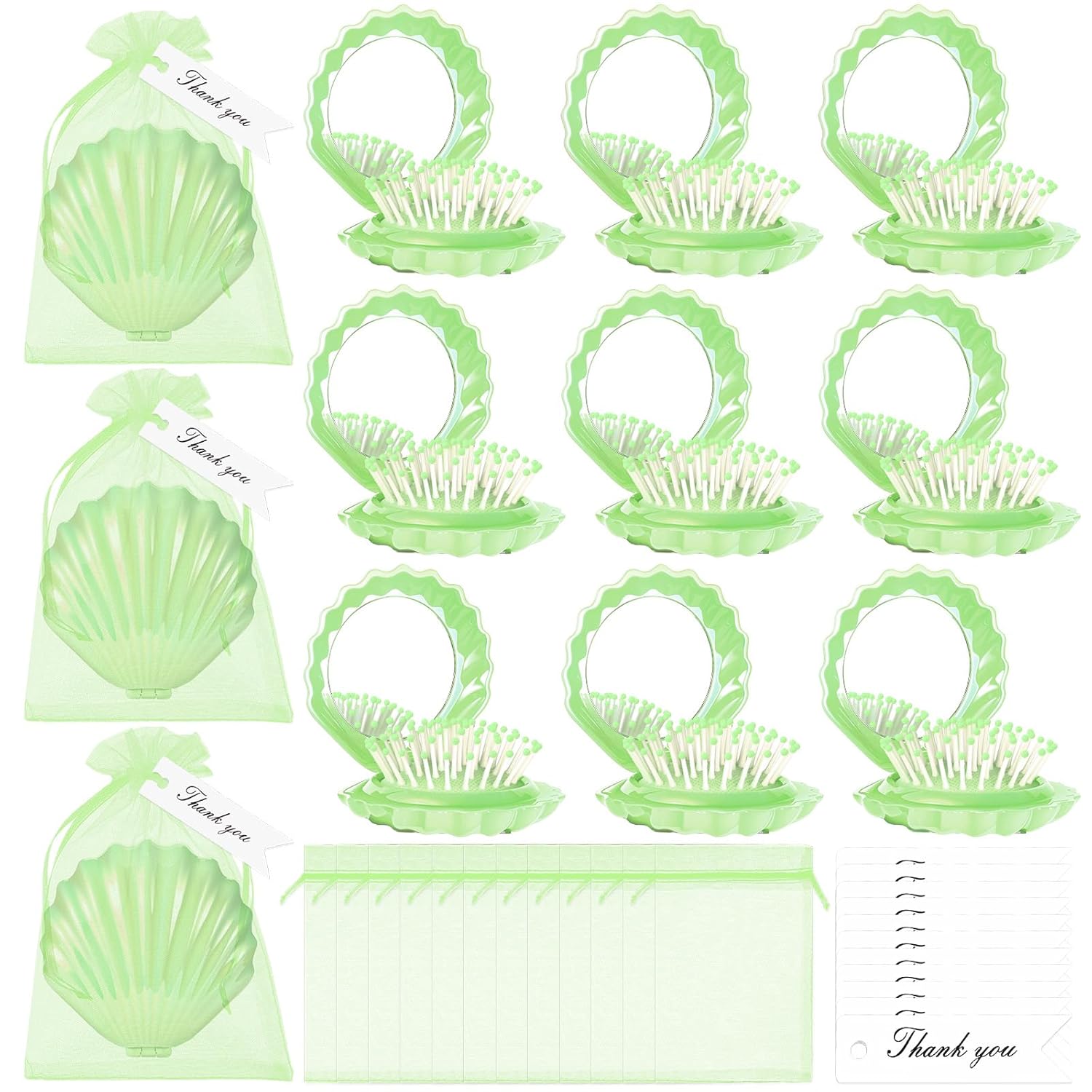 • Party Favor Gift: The shell compact hair brush come in organza bag with thank you tags to express your appreciation to your guests, these portable mirror brushes gift sets are delicate party supplies for your guests, also suitable for mermaid theme party, engagements, bridal showers,quinceanera, bachelorette party, anniversary add a romantic atmosphere