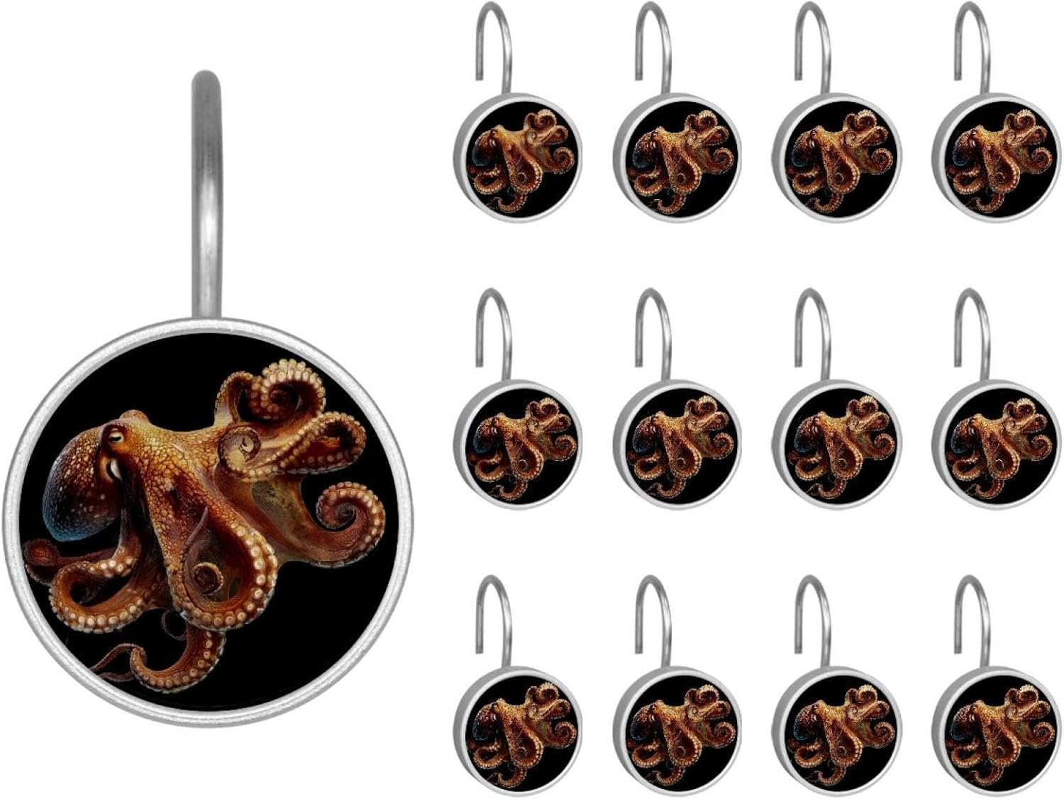 MATERIAL: glass, stainless steel. These shower curtain hooks can be decoration bathroom and will be long-lasting.12 pieces of shower curtain hooks, round crystal glass decoration, printed patterns, silver hooks to match various styles of bathroom shower curtains. SIZE: Crystal glass diameter of round shower curtain hook is 1.45x1.45in/ 3.7x3.7cm. The shower curtain hooks diameter is about 1.1in, 12 pieces shower curtain hooks are suitable for rod of 8-28mm(0.3"-1.1"). RUST RESISTANT:Shower hooks are made of stainless steel and crystal glass, which is durable, rust-proof and corrosion-resistant, it will not rust suitable for wet bathroom environment. EASY TO INSTALL:Hand the shower curtain hooks hold securely on straight or curved shower curtain rods,slid easily and smoothly. Easy to install and decorate your bathroom. BEAUTIFUL AND ELEGANT:Beautiful Love hook add charming scenery for your bathroom, baby room, bedroom, living room, and the gorgeous style is easy to match with any kinds of bathroom shower curtain. EASY GLIDE: Open and close your shower curtain quickly and easily with the Shower Hooks, easily glides on shower curtain rods and tension rods. No snagging; no effort; no hassle PACKAGE: 12 shower curtain hooks in a pack.The bathroom curtain hook has a smooth appearance and can be hung on the pole to pull it at will. Special price 12 sets to meet your needs.