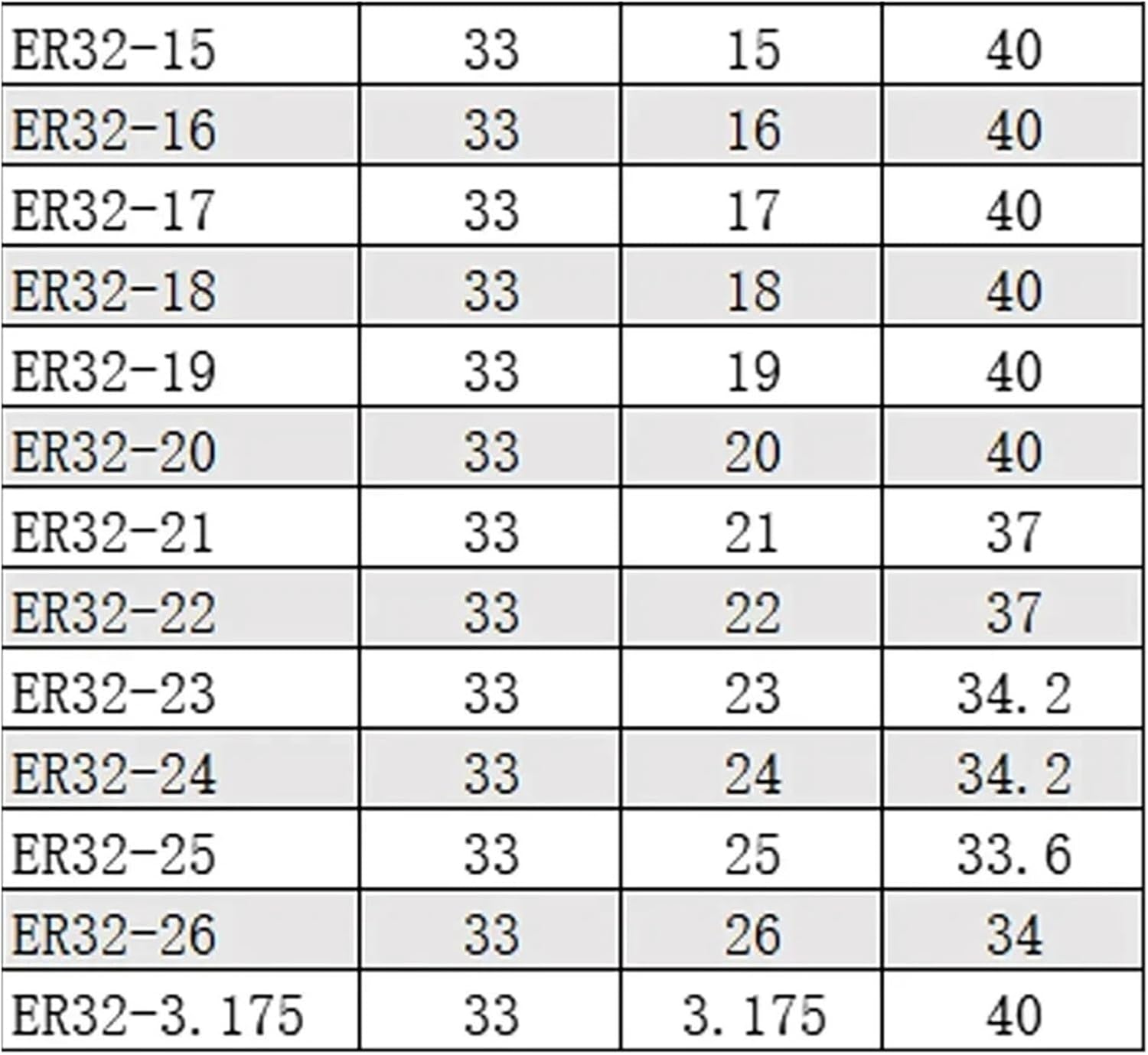 Product Name: ER collet Material: 65Mn Specification: ER32 Precision: 0.008mm Level: AA Clamping range: 1-26mm Matching tool holder: BT30/40/50-ERMT2/3/4/5-ERNT30/40/50-ER AA ER32 collet ========== High-concerned chemical : None Model Number : ER32 Origin : Mainland China model : ER32 1-26mm Accuracy : 0.008 Be applicable : ER tool holder,ER extension rod,ISO-ER,HSK-ER,All ER series