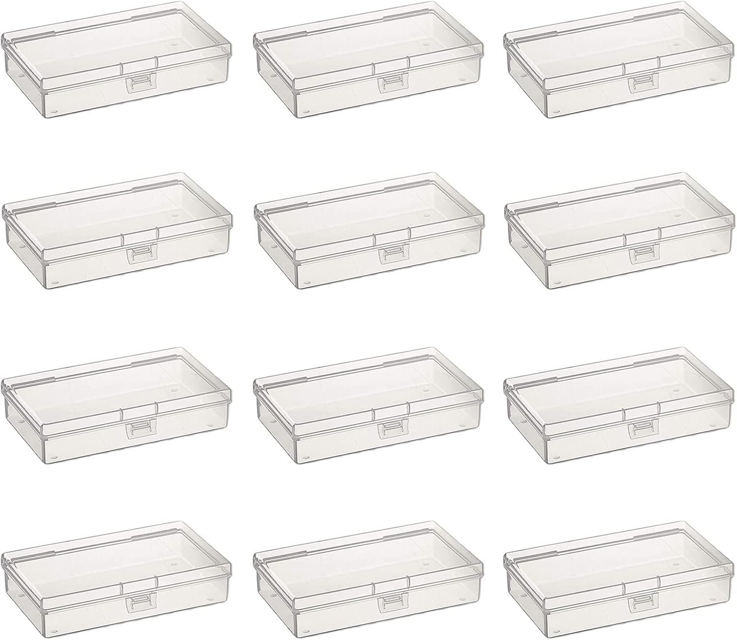 This 19 Pack small rectangular clear plastic containers box with hinged lid storage box case for crafts, tiny bead, jewelry, findings, pills, watch parts and other small items. These rectangular clear plastic containers come with hinged lid and they are made of good quality clear non-brittle plastic with high durability; Smooth seamlessly edges will not hurt your hands and can eliminate the risk of any messy leaking during your travels. Multi-function containers: For storing and organizing small items, such as crafts, beads, coins, jewelry and watch findings. DIY applications: You can keep them as basic storage containers for small items. Good to hold sewing kit, charging cables, fishing lures or hooks and line and any other small item you want to store and carry. Specifications: Shape: Rectangular Material: Clear PP plastic Each Box Size (Outside): 145 x 85 x 35 mm / 5.7 x 3.35 x 1.38 inch (L x W x H) Thickness: about 1 mm Package includes: 19 x Rectangular plastic boxes