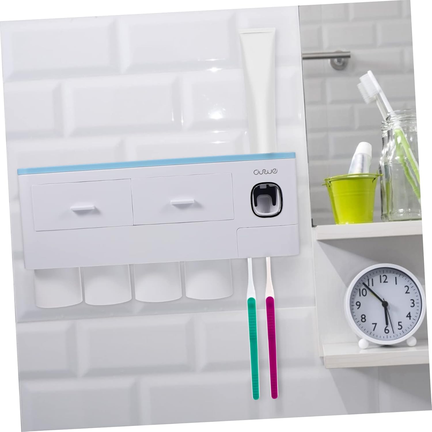Package List 1 x Toothbrush Holder Characteristics - Material: PP, ABS toothbrush holders. - Size: Approx. 37.00X18.80X10.00cm/14.54X7.39X3.93in toothbrush holder. - Color: Blue toothpaste squeezer. - A good helper for storing toothbrush, washing cups, shampoo to keep them clean and dry wall-mounted toothbrush holder. - Wall-mounted design, it saves much space for your bathroom, which brings much convenience to your life bathroom toothbrush organizer. - Equipped with adhesive, it allows you to easily install it on the wall without drilling. - Made of PP and ABS material, and for use. - The storage rack can be used to store your cosmetics, shampoo and other bathroom supplies.Goods Informationtoothbrush holders This item is a toothbrush holder, made of PP and ABS material, and .wall-mounted toothbrush holder Not only can it hold your toothbrush and cup, it can also squeeze toothpaste automatically.toothbrush holder Suitable for home, bathroom, washroom, hotel, etc.toothpaste squeezer Choose it for you