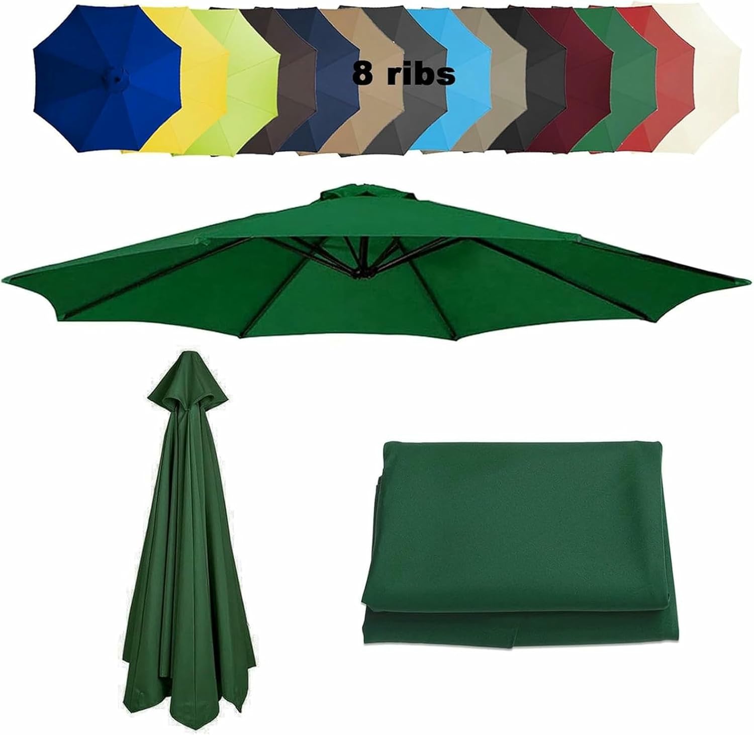 ▶▶▶▶Breathe new life into your outdoor parasol!A new look for your perfect market patio umbrella, you can update your parasol for far less than the cost of buying. Depending on the season or occasion, replace and dress up your backyard, pool, garden or patio with of our outdoor umbrella covers.▶▶▶▶ Features:①180g polyester fabric, UV50+, effective uv blocking, colour fastness to european standard 5 or 4, higher than market standard 3 waterproof cover, suitable for outdoor scenery even in heavy rain.②removable and washable, easy to clean and assemble after use, can be replaced without tools.③comes with vents, suitable for wooden, aluminium, metal or fibreglass market umbrella stands.④size : Please check the size chart carefully before purchase and measure carefully the umbrella rib long and the number of ribs. 10+ colours to choose from, each very bright and vibrant. A new replacement umbrella fabric is an economical and practical solution.Parameters▶ Name: Replacement canopy / parasol cover / umbrella cloth▶ Quantity per unit: 1▶ Material: 1oo% polyester fabric▶ Advantages: Uv protection, waterproof, tear-resistant, removable, washable, ventilated for heat dissipation▶ Optional colours: white , red , green , burgundy , black , top color , lake blue , gray , khaki , navy blue , brown , grass green , yellow , royal blue▶ Optional specifications: 200cm/6ribs; 270cm/6ribs; 270cm/8ribs; 300cm/6ribs; 300cm/8ribs▶ Packing list: Replace canopy cover *1(canopy only)▶ NotePlease measure all necessary dimensions of the umbrella carefully before purchg.