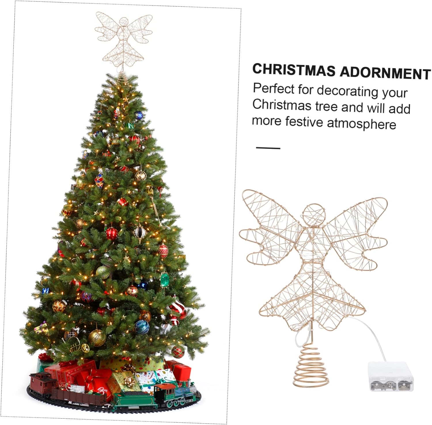 Package List 2 x Angel Tree Topper with String Light (3 AAA Batteries Not Included) Characteristics - Color: Golden Christmas tree decor. - Material: Iron Christmas Tree Topper. - Size: 25.00X18.00X4.50 cm/ 9.82X7.07X1.7 7inch Christmas adornment. - Made of iron material, it is , easy to install and pretty christmas tree star. - They can make your party decoration full of novelty and lively festive atmosphere holiday tree decoration. - Suitable for most Christmas trees. The spring bracket can be easily instal on Christmas treetop christmas tree top decoration. - Easy to use just put this angel decoration on your Christmas tree and they will stand firmly golden tree topper decor. - The is coated with glitter powder, and the appearance is noble and luxurious christmas star topper.Goods Descriptionxmas tree topper star Made of great iron material, shiny without the heavy weight and hazard.lighted tree topper Choose the angel tree topper to bring a new look for the Christmas tree.Christmas adornment This sparkling decor is the addition to complement your Christmas decor, bring the Christmas spirit into your home