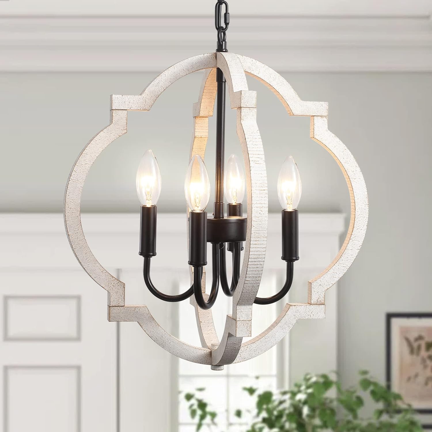 | Style Name | Farmhouse Wood Orb White Chandelier for Dining Room |