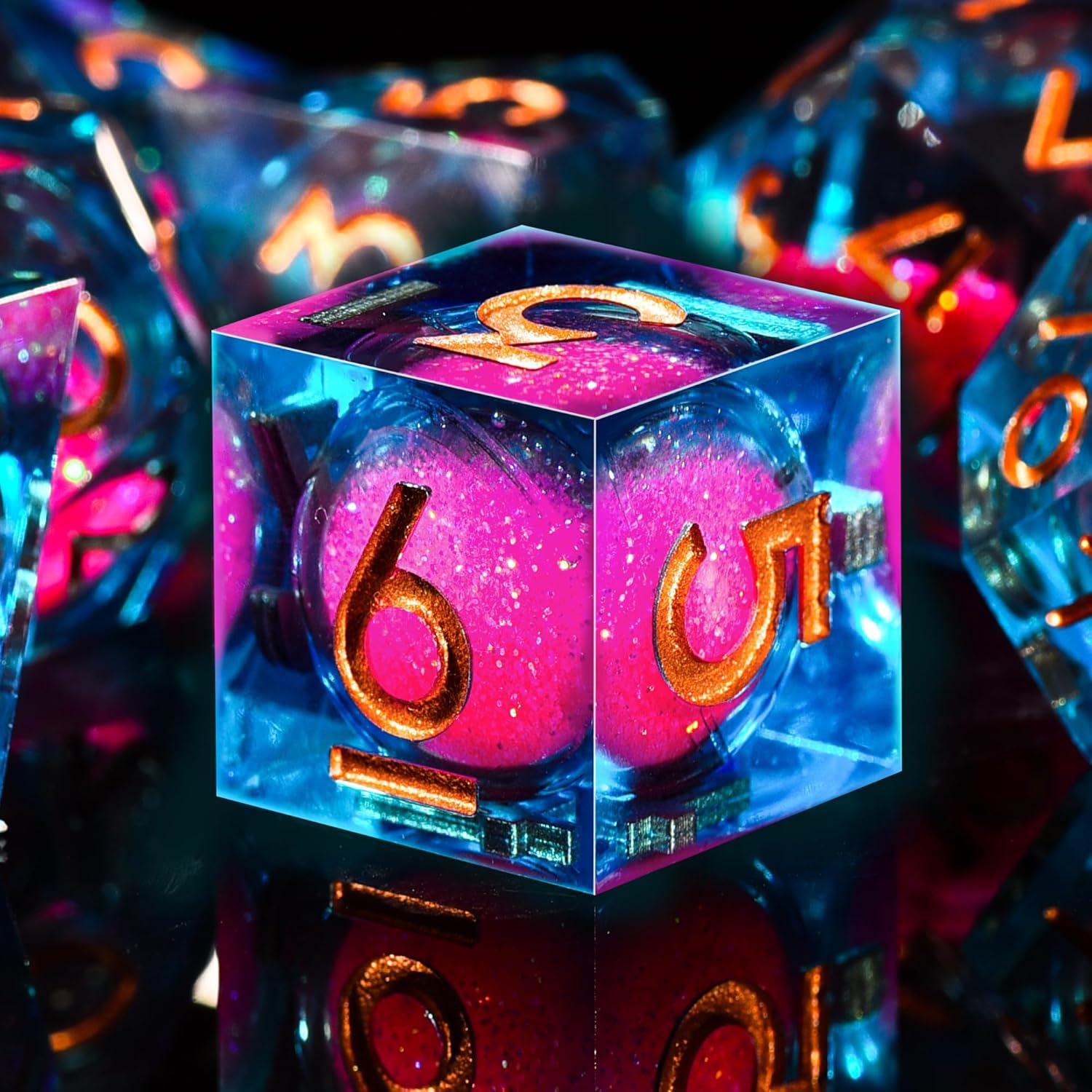 • Great Game Dice - The sharp edge liquid core resin dnd dice set are perfect for Dungeons and Dragons, MTG, Shadowrun, Pathfinder, Yahtzee, math games, and other table games etc.