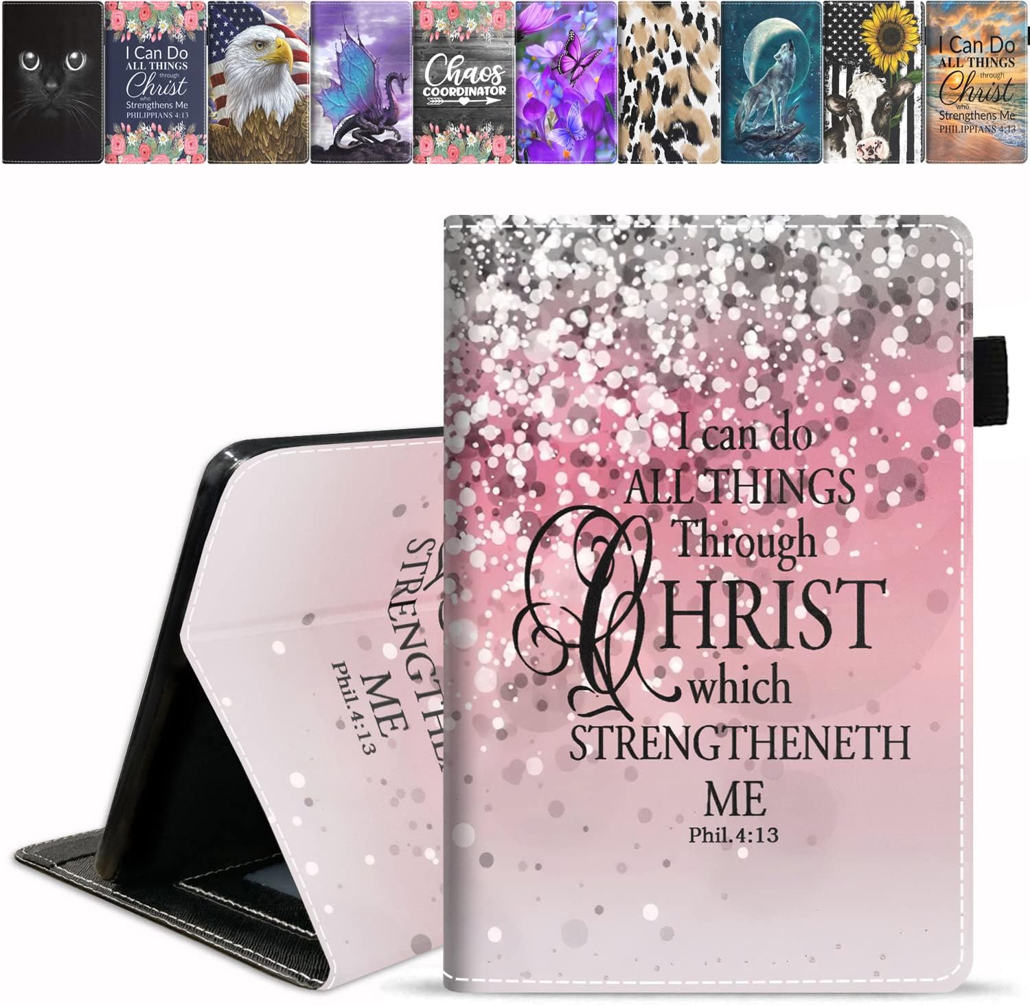 Case for Amazon Fire HD 10 Tablet 10.1 inch (9th/7th Generation, 2019/2017 Release), Premium PU Leather Cover with Card Slot & Pencil Holder, Floral Quote Bible Verse Philippians 4-13