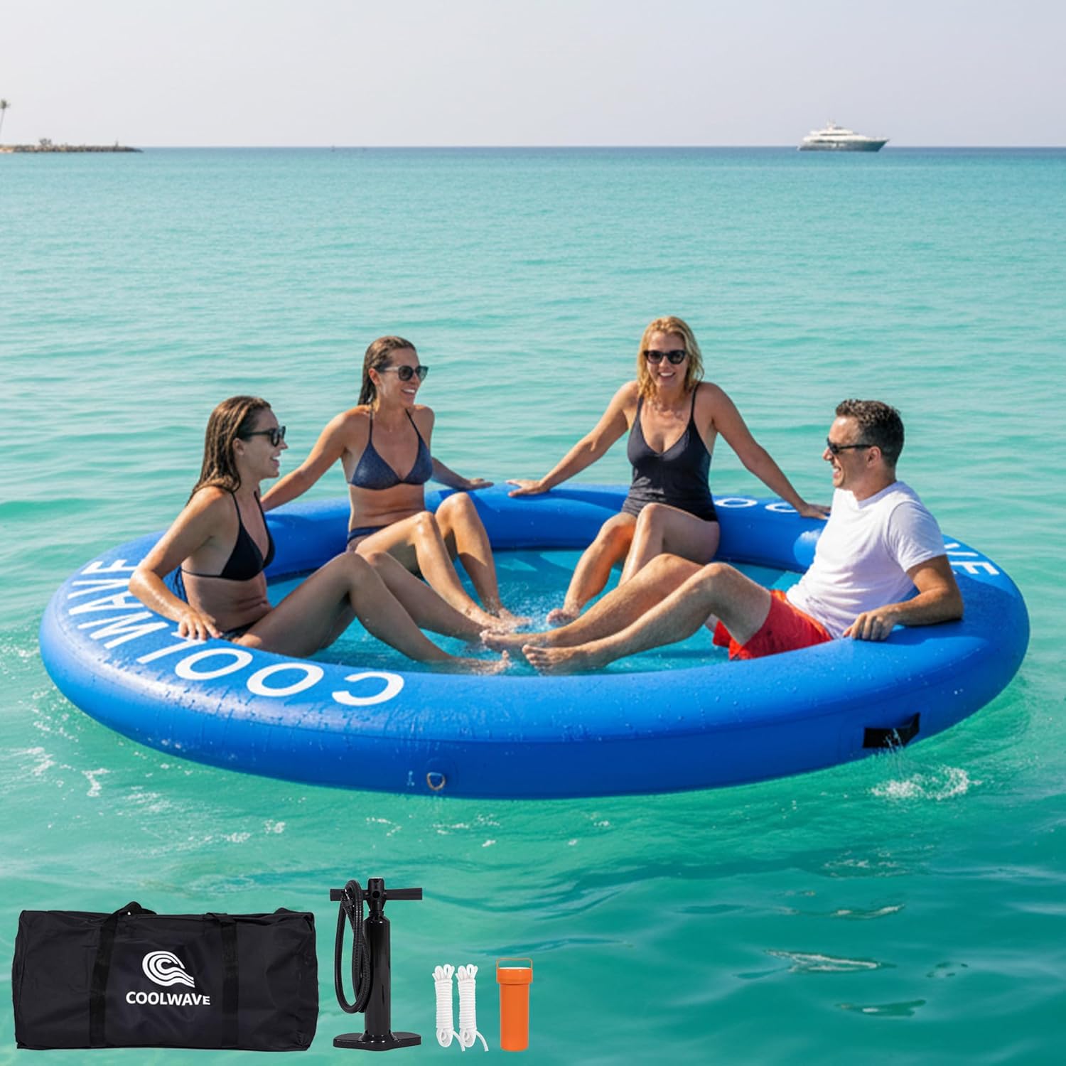 COOLWAVE Inflatable Water Hammock Floating Dock, Inflatable Raft for Family and Friends, Round Floating Ring for Parties, Water Float with Cup Holders for Pool and Lake, Fits Multiple People
