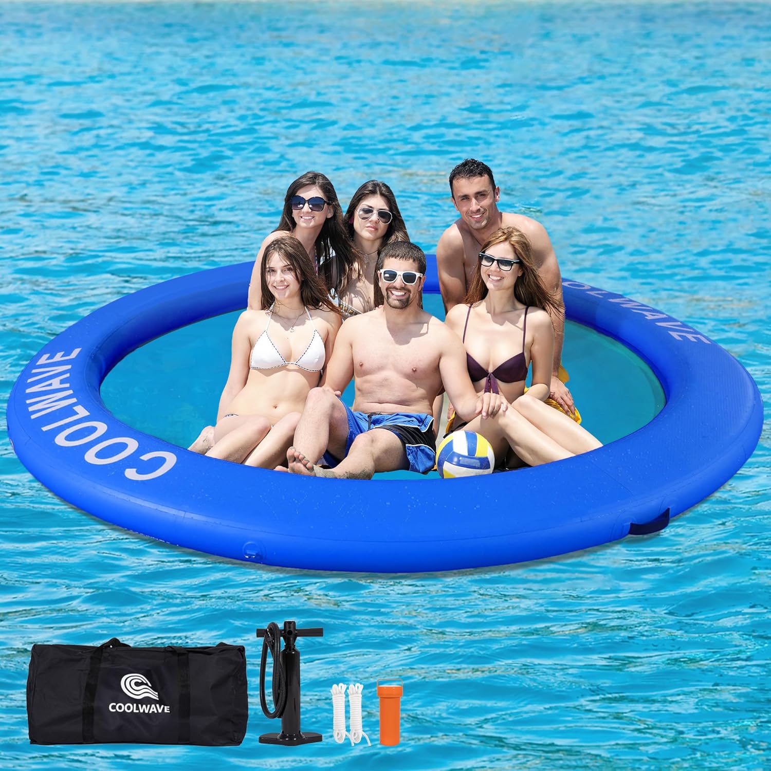• AVAILABLE IN MULTIPLE SIZES AND COLORS: The COOLWAVE inflatable water hammock is available in 6FT, 8FT, 10FT and 12FT and various colors inclding blue, mint green, and berry. The floating ring for lakes can support up to 600 lbs, making it perfect for family gatherings and friend parties