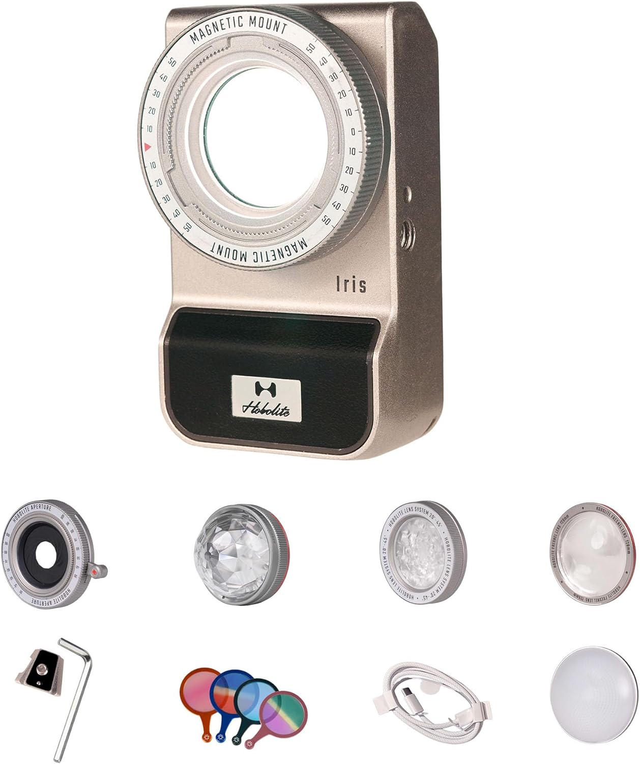 | BuiltIn Media | Adjustable Lens x 1, Frosted Dome x 1, Iris Portable Photo Light x 1, USB Cable & Soft Pouch x 1, V-Mount Plate x 1 |