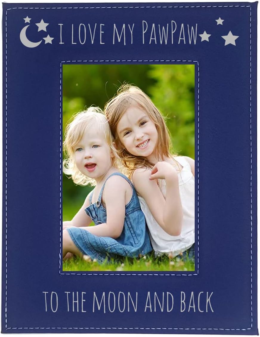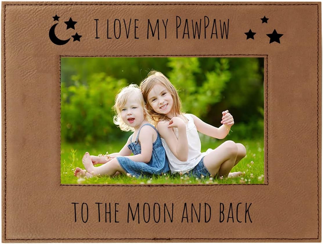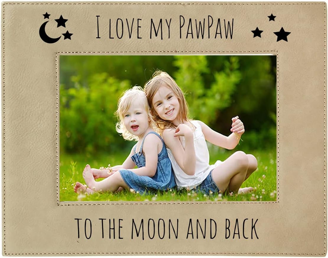 This I Love My - To The Moon And Back Picture Photo Frame is laser engraved by our in-house laser engravers. The design will not rub off, will last for generations. This picture frame is made of faux leather. The high quality leatherette picture frame is richly textured and feels and looks like real leather. The gift can be given from a grandsons, granddaughters, a grandchild for a new grandparent or family. A memorable gift for years to come. The engraving removes the top layer of the leatherette and reveals the inner layer.