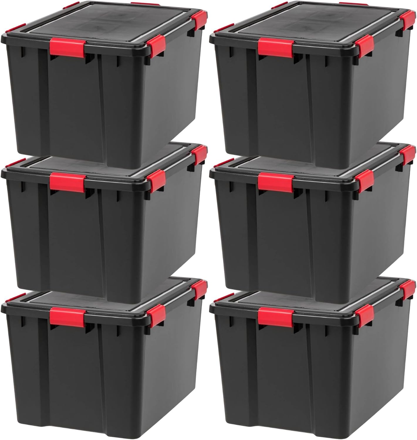 Take control of your space with IRIS USA's WEATHERPRO storage containers. Made in the USA with durable materials, these bins feature gasket seals that keep your belongings fresh and protected from moisture and dust. The multi-buckle latching system secures the lid, making these bins perfect for storing documents, food, clothes, and outdoor gear. Grooved lids and bodies allow stable stacking for easy organization at home or on the go. BPA-free and acid-free for your piece of mind. When not in use, their tapered design allows for compact nesting. Simplify your life with IRIS USA's WEATHERPRO containers!