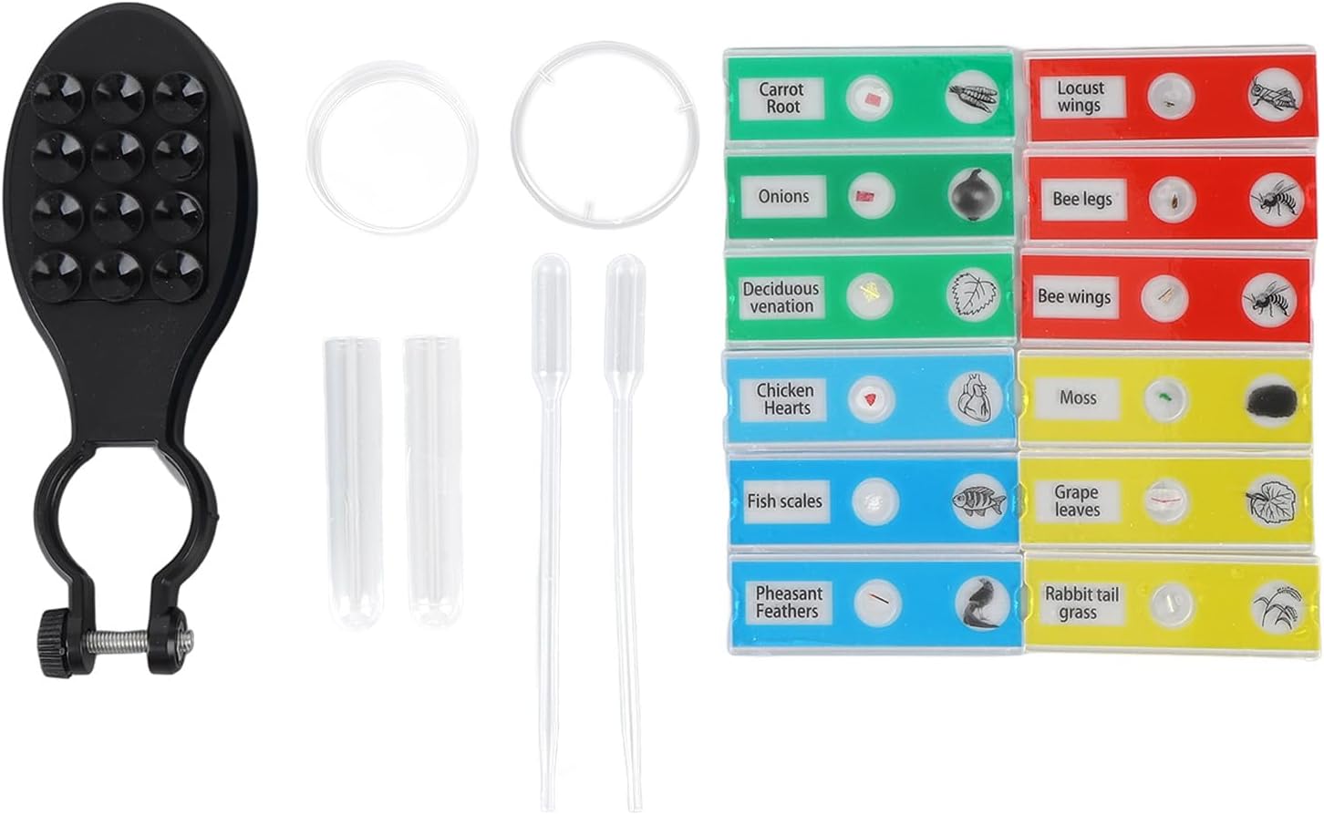 1. Portable: Miniature microscope has a portable design, easy to carry and store, suitable for school or outdoor scientific experiments. Its lightweight construction ensures that students can take you wherever they go with no hassle. 2. High-Definition Lens: The microscope has a high-definition lens to observe structures and fine cells. This high-definition observation stimulates curiosity and enhances understanding of biological sciences. 3. Exploration Set: The microscope set includes a variety of scientific equipment to meet the needs of scientific exploration of students. This comprehensive kit allows students to realize their own observations. 4. For elementary and elementary students: Portable microscope for elementary and elementary students to help them develop scientific experiments and observation skills. This kind of experience may develop students' interest in science. 5. Easy to operate: The miniature microscope is easy to operate and suitable for home and school use. By making science accessible, the scientific experimental microscope helps develop curiosity. Specifications: Item Type: Miniature Microscope Set Battery type: 2 x AAA batteries (batteries not included) Material: ABS How to use: Insert 2 AAA batteries, put the sample slide, turn on the light, adjust the distance and lighting as needed, rotate the magnification button to view Package List: 1 x Microscope 1 x Stand 6 x Tools 1 x Sample Box (12pcs/box) 1 x Instruction Manual
