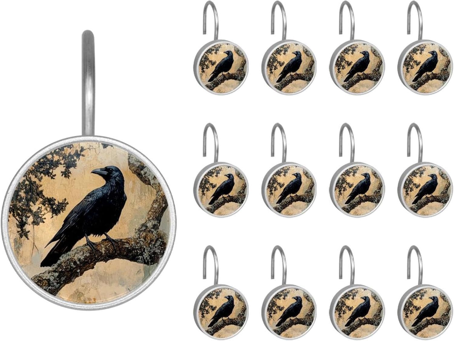 MATERIAL: glass, stainless steel. These shower curtain hooks can be decoration bathroom and will be long-lasting.12 pieces of shower curtain hooks, round crystal glass decoration, printed patterns, silver hooks to match various styles of bathroom shower curtains. SIZE: Crystal glass diameter of round shower curtain hook is 1.45x1.45in/ 3.7x3.7cm. The shower curtain hooks diameter is about 1.1in, 12 pieces shower curtain hooks are suitable for rod of 8-28mm(0.3"-1.1"). RUST RESISTANT:Shower hooks are made of stainless steel and crystal glass, which is durable, rust-proof and corrosion-resistant, it will not rust suitable for wet bathroom environment. EASY TO INSTALL:Hand the shower curtain hooks hold securely on straight or curved shower curtain rods,slid easily and smoothly. Easy to install and decorate your bathroom. BEAUTIFUL AND ELEGANT:Beautiful Love hook add charming scenery for your bathroom, baby room, bedroom, living room, and the gorgeous style is easy to match with any kinds of bathroom shower curtain. EASY GLIDE: Open and close your shower curtain quickly and easily with the Shower Hooks, easily glides on shower curtain rods and tension rods. No snagging; no effort; no hassle PACKAGE: 12 shower curtain hooks in a pack.The bathroom curtain hook has a smooth appearance and can be hung on the pole to pull it at will. Special price 12 sets to meet your needs.