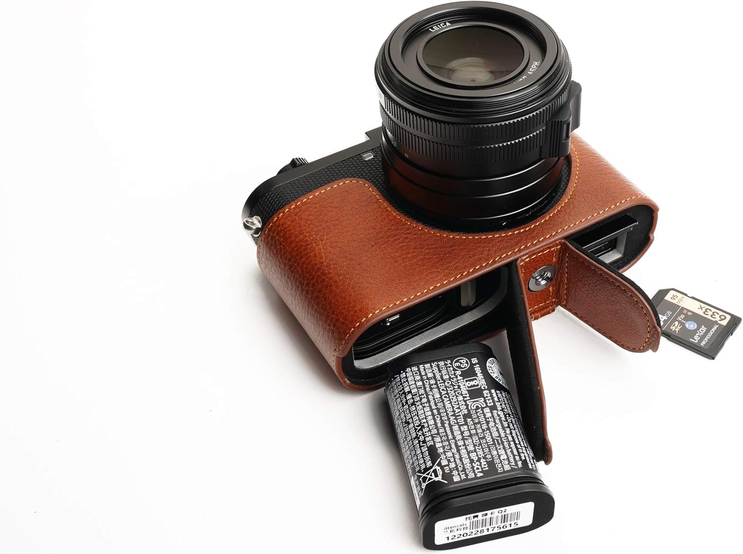 This camera is made by real top layer oil leather, the design is simple and vintage, use Metal sizing techniques make it very fit with the camera body. Inside lining use high lever velvet to protect camera body for scratch and coloration. There is a opening on the bottom for battery, You don't need to take off the half case when you change battery. Under base screw is made by copper and it can easy take off by coin. You don't need to take off the half case when you use tripod. It has a special design for Leica Q2 Camera which makes it easy to turn over the Screen and it will totally not affect screen rotation. You don't need to take off the half case when you connect data lines. Content: 1 x camera half case, 1 x Free Genuine Real Leather Hand Strap, camera not included. Material:Genuine leather.