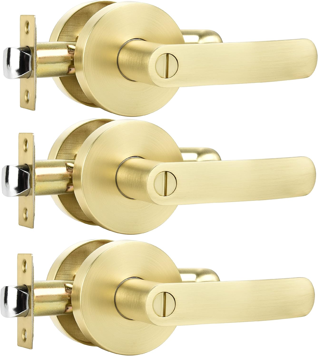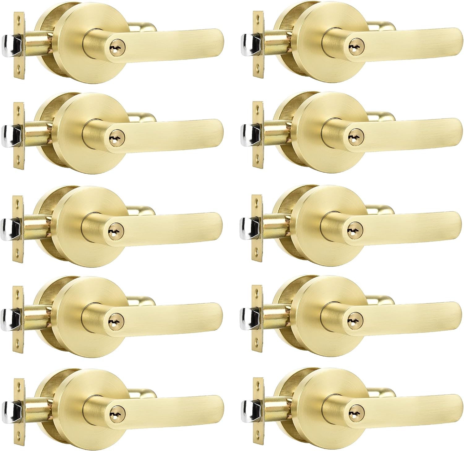 • PREMIUM QUALITY HARDWARE: Leybedong heavy-duty door handle is made of premium quality zinc alloy and brass parts to guarantee rust-free in a high humidity environment. Light Satin Brass finish and sleek design make a improvement for your home.