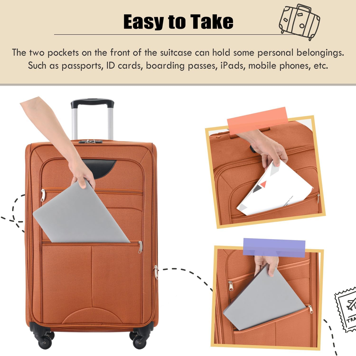 Travel easier with this lightweight 3 piece softside luggage set featuring quick-access pockets, smooth 360° spinner wheels, a TSA lock, and organized interiors—perfect for family trips and long vacations.
