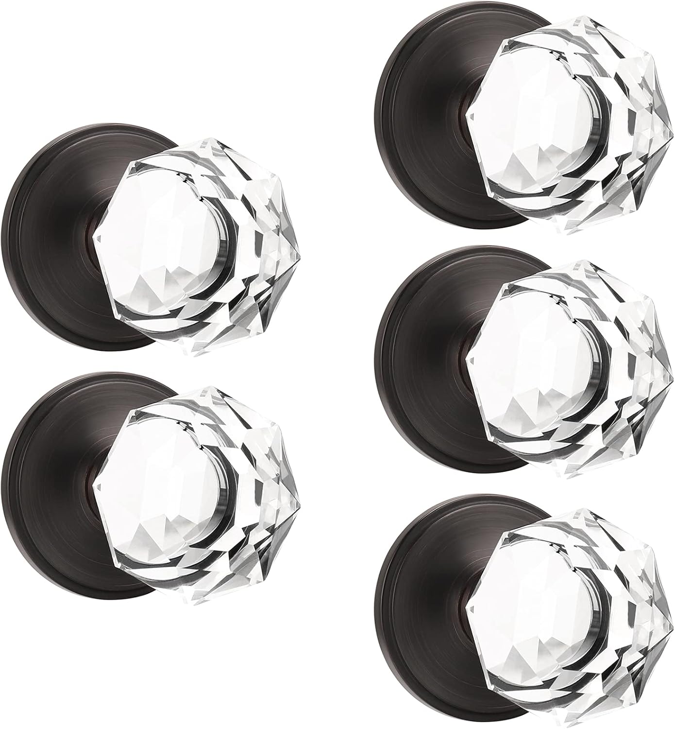 • [Crystal Style Door Knob]: Made with Durable Clear Glass Knob and Zinc Alloy Rosette in oil rubbed bronze finish, provides long-lasting durability, stability and smooth touch.