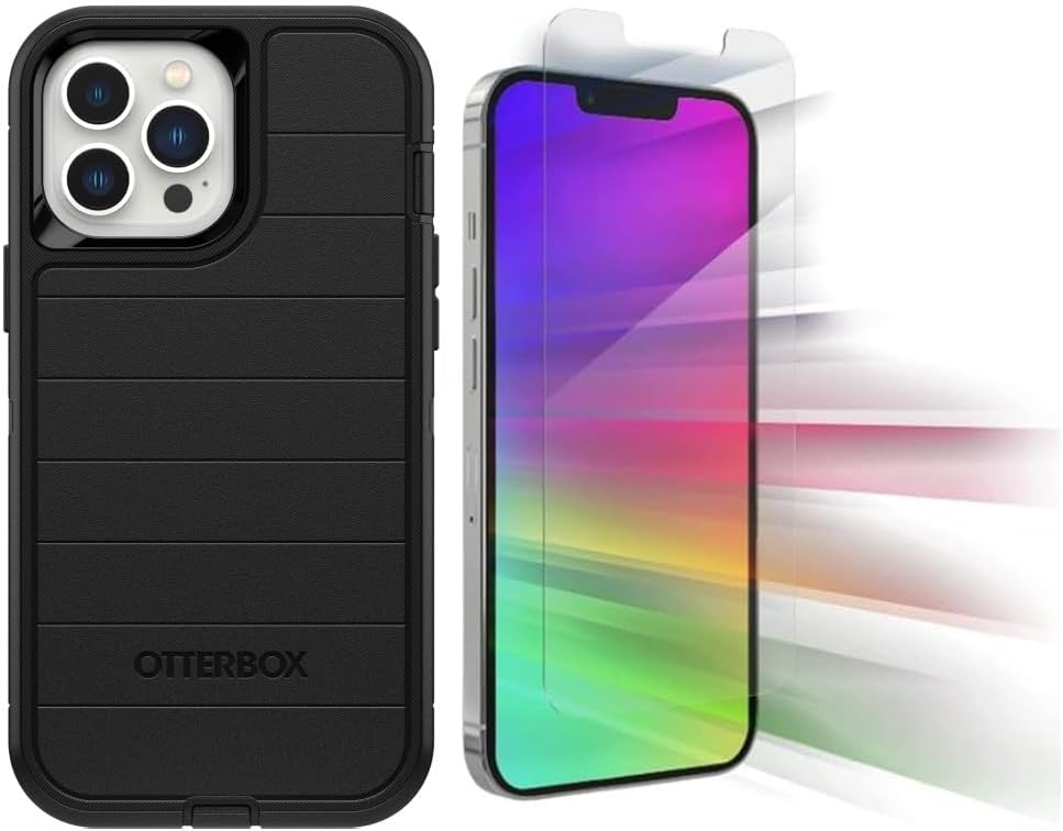 OtterBox iPhone 13 Pro Max (Only) Bundle: - Defender Series Case - with Screen Protector - Happy Purple - Case Only - Microbial Defense Protection - Non-Retail PackagingDefender Series Pro is the rugged protective iPhone 13 Pro Max case that delivers advanced defense for your device. Defender Series Pro integrates a silver-based antimicrobial additive into the case that helps inhibit microbial growth and defends the case exterior against many common bacteria.* Weaving the additive into the case materials ensures it keeps protecting your case 24/7/365 and outlasts heavy use. The premium rugged design displays clean lines with a comfortable grip. Plus, the raised edge offers added camera and screen defense.FEATURES: OtterArmor Microbial Defense: protects your case against many common germs Functional profile: premium rugged design and a comfortable grip Pro Drop Protection against drops, scrapes and tumbles Premium rugged design with a comfortable grip Case Only: "Belt Clip Holster not included" Raised edges protect camera and screen Port covers block dirt, dust and lint from getting into jacks and ports Works with 5G, 4G and all other standard networks DROP+ | 4X as many drops as military standard (MIL-STD-810G 516.6) Wireless charging compatible (Screen Protector sold separately) WHAT'S IN THE BOX: OtterBox Defender Series Case (Case Only - Holster/Belt Clip Not Included) Screen ProtectorCOMPATIBILITY: iPhone 13 Pro Max (Only - Not Compatible with iPhone 13/13 Mini/13 Pro) PACKAGING: Non-Retail Packaging