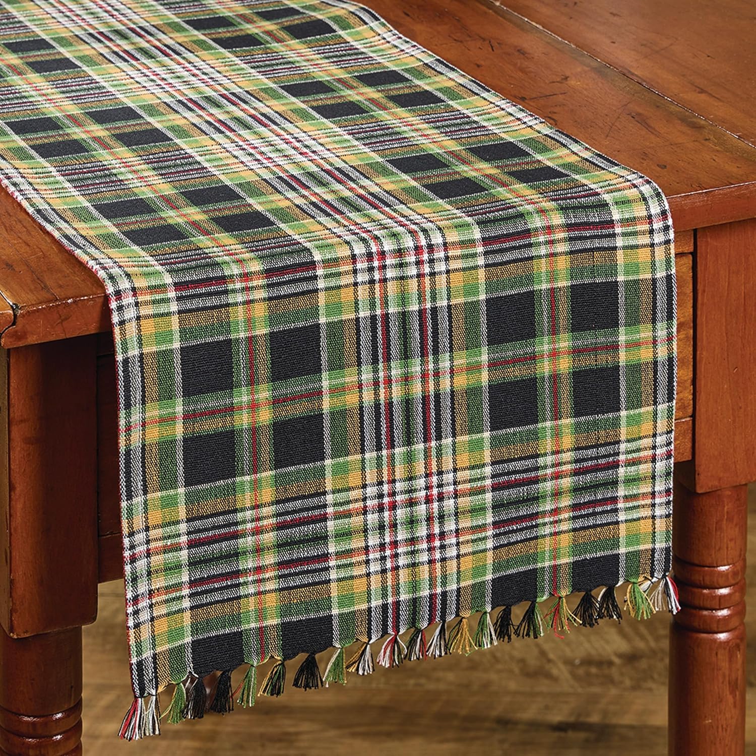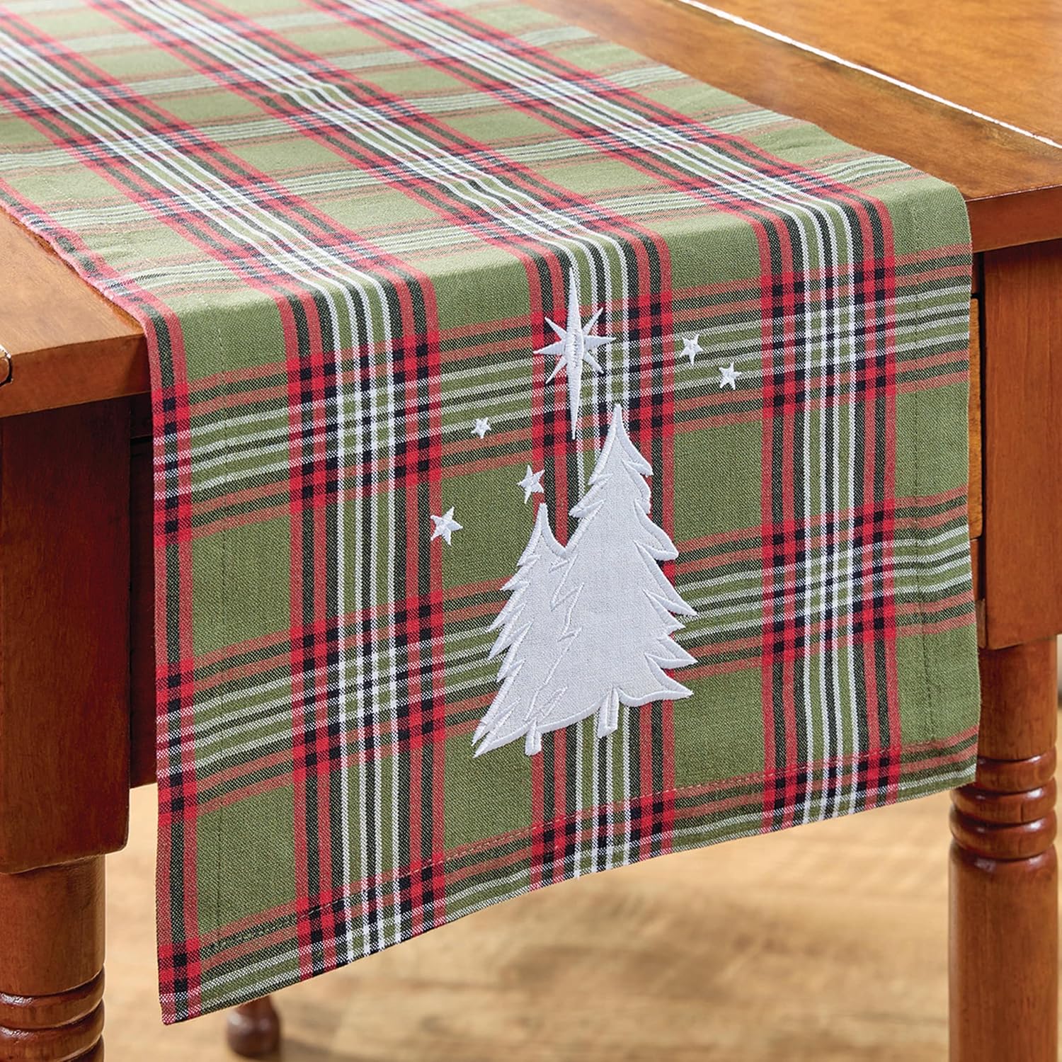 Q: What is this table runner used for? A: It creates a festive and welcoming foundation for seasonal dining, offering a warm Christmas backdrop for centerpieces, greenery, candles and dishes. Its braided chindi texture adds visual interest while protecting your table. Q: What do people like most about it? A: Shoppers appreciate the classic farmhouse style, the neutral cream and beige tones paired with red and green accents, and the substantial 13" x 54" size. Q: What concerns do customers typically have? A: Because of its braided construction, customers sometimes wonder if the runner will lie flat or if cleaning is difficult. The runner naturally relaxes once laid out, and spot cleaning preserves the woven detail with ease. Q: How does this runner compare to similar options? A: Unlike printed runners, this design uses tightly braided cotton blend construction for added depth, durability and texture. It offers a more premium, handcrafted feel and blends with both rustic and traditional winter decor styles. Q: How well does it hold up to daily or seasonal use? A: The cotton blend material is strong, absorbent and designed to last through repeated holiday seasons. It protects surfaces from scratches, heat and everyday wear, making it practical for families and frequent entertainers. Q: Is it easy to clean and maintain? A: Yes. Because of its thick woven design, spot cleaning or dry cleaning is recommended to maintain its structure. Q: Does it work in different home styles and spaces? A: Absolutely. It fits farmhouse, cottage, rustic, vintage, traditional and winter-themed decor. It works on dining tables, buffets, consoles, coffee tables or entryway surfaces, offering adaptable styling options. Q: What makes this table runner a great holiday accent? A: Its festive plaid-inspired pattern, braided texture and versatile palette let it blend seamlessly with Christmas decor, adding warmth and charm to meals, gatherings and winter decorating year after year.