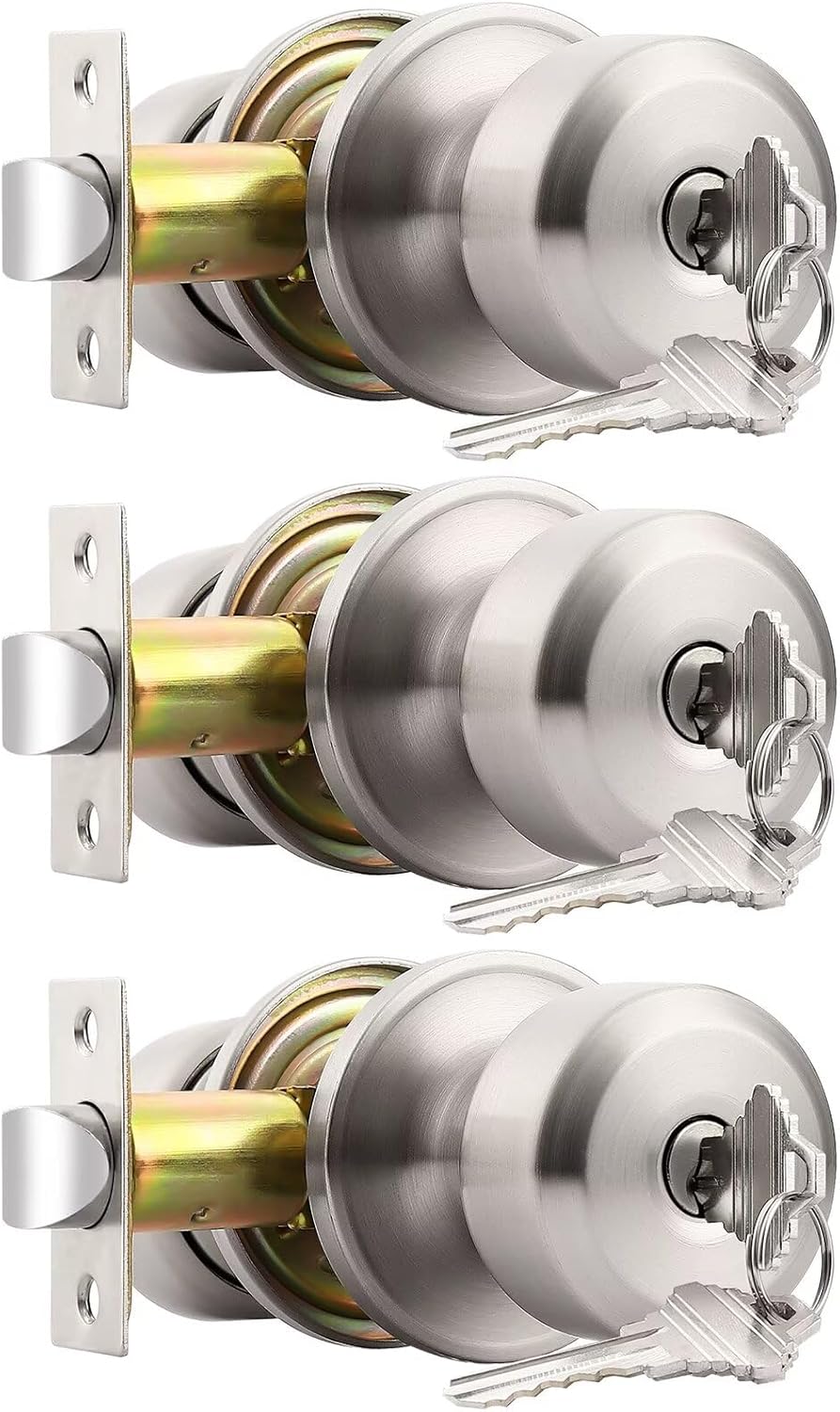 • Keyed Alike function: The door knobs can be locked and unlocked with same keys.