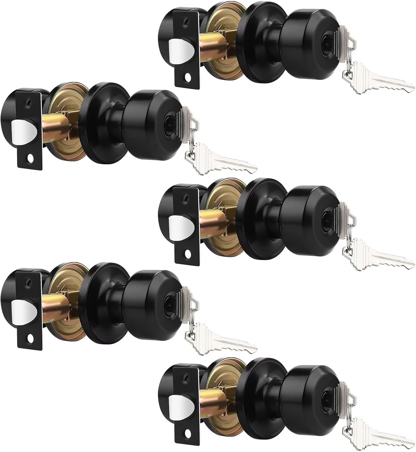 Probrico Keyed Alike Entry Black Door Knobs, Cylindrical Shape Knobs with Lock and Keys,Combo Packs 2 Pack