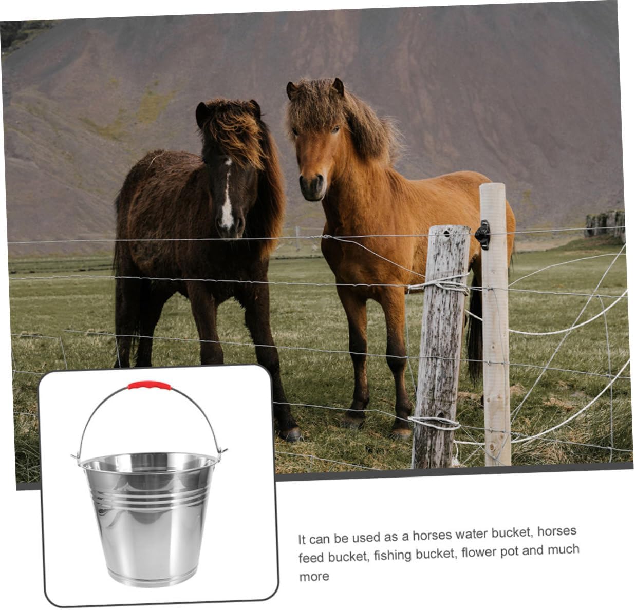 Package Include 1 Feeding Bucket Characteristics -Material:Stainless Steel large capacity bucket -Size:30.00X26.50X20.00cm/11.79X10.41X7.86in feed buckets for horse -Color: feed metal bucket -Capacity:10L horse bucket - It can be used as a horses water bucket, horses feed bucket, fishing bucket, flower pot and much more multi-purpose bucket. - Our bucket is -rust, large capacity, and ready for use in any environment longtime. horse feeding water bucket - This bucket is made of stainless steel material, durable and tough, can be used for longtime multipurpose horse bucket. - Deep enough, more widely used water storage bucket. Simple and generous , smooth in lines stainless steel feed bucket. - a portable bucket with handle and lid, convenient to carry out or move, very practical handle bucket.Goods Informationhorse feeding water bucket This is a horse feeding Water Bucket made of stainless steel materials that is durable enough to serve you long time.horse feeder With a handle, easy to move and carry, which can bring you great convenience.multi-purpose bucket It can also be used as beach bucket, household bucket, milk bucket, ice storage bucket, and so on