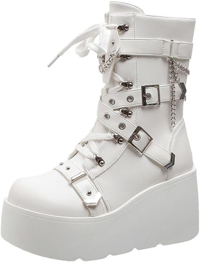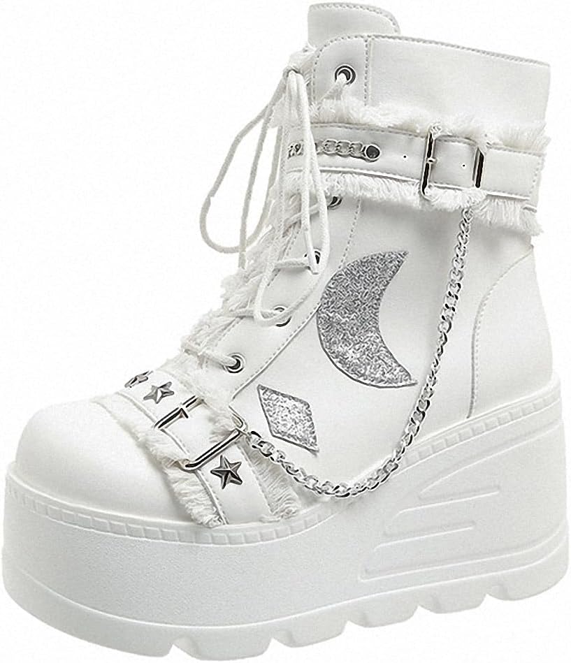 Properties: FASHION DESIGN: Features a leather upper, a stylish lace-up design, side trim buckles to add style, and lace can be adjusted freely.Comes with a comfortable insole and a non-slip sole.The lace-up design and convenient zipper opening at the inner side make them easy to slip on and off, while the microfiber lining ensures a comfortable fit. With a super lightweight chunky platform outsole, you'll be able to dance the night away without missing a beat. STYLISH AND COMFORTABLE: Women's Ankle Booties Lace Up Buckle Chunky High Heel Platform Knight Boots Belt Buckle Punk Cosplay As a fashion girl,you should have these shoes! Ulalaza is committed to providing you with the latest fashion trends and designs. VERSATILITY: Riding boots combine performance and style to complement leisure activities and high-end business gatherings while demonstrating your professionalism and style. Personality and focus.Get ready to rock the night away with the Radioactive Platform Boots. These punk-inspired rave boots boast a sleek black vegan leather upper,accentuated by striking yellow/orange iridescent python detailing. JUST BE WARNED-THESE BOOTS ARE SURE TO TURN HEADS AND ATTRACT ATTENTION ON THE DANCE FLOOR!
