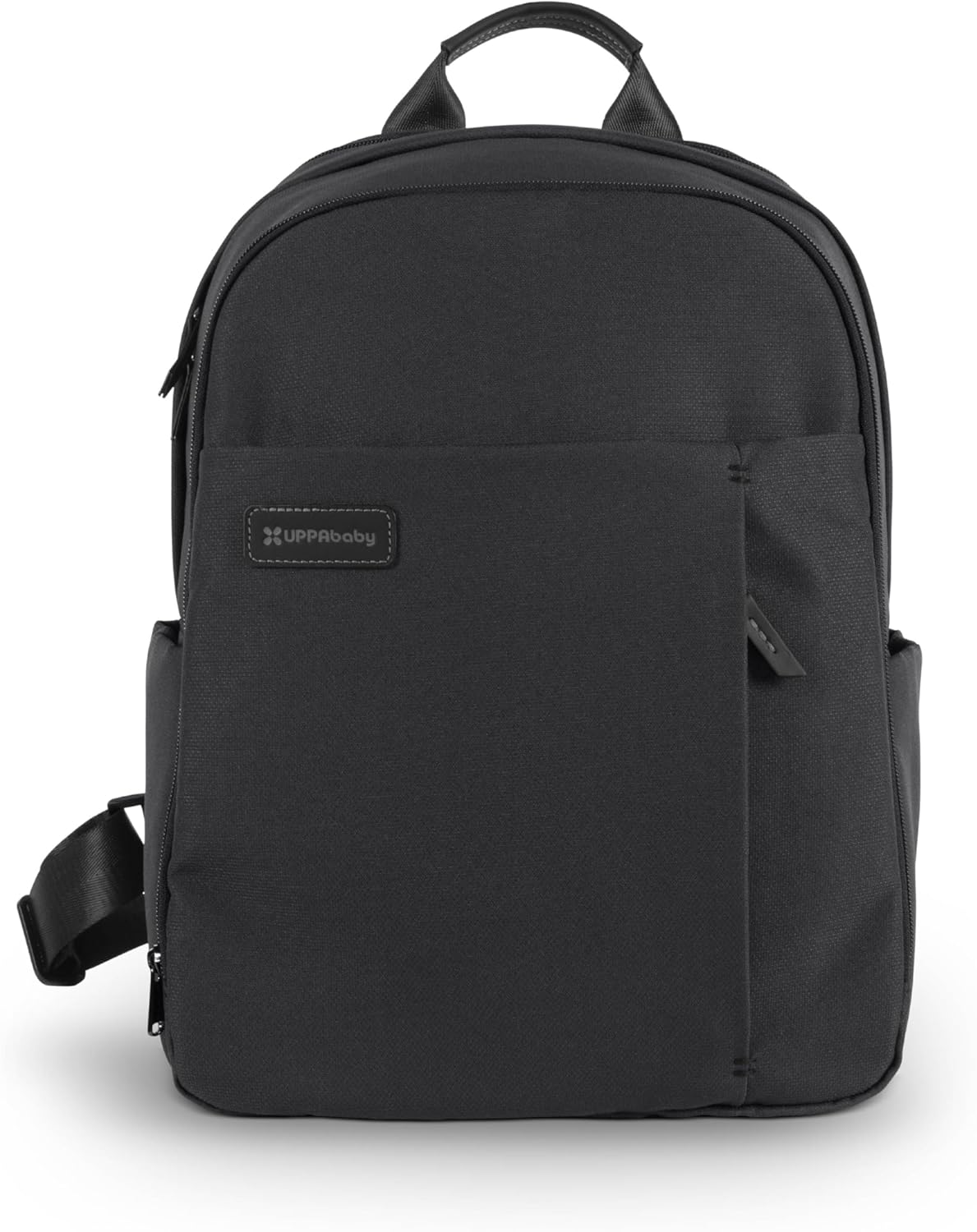 The UPPAbaby Changing Backpack provides a functional yet stylish solution to store baby care necessities and personal items. The premium fabrics and leather detailing coordinates beautifully to the stroller for a custom look. Premium fabric and leather accents coordinate to stroller fashion. Adjustable backpack straps for easy carrying. Grab & go handle with leather cover. Stroller attachment straps to store bag. Ease to wipe clean changing pad. Stores into pocket when not in use. Insulated bottle case included. Changing station with multiple compartments or diapers and wipes within reach. Separate compartment with storage for personal items. Water-resistant outer material and wipe-able inner lining. COMPATIBLE WITH: All UPPAbaby Strollers.