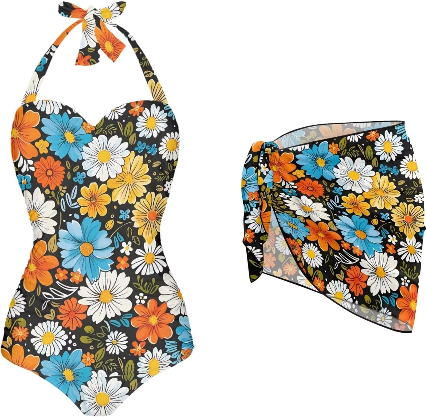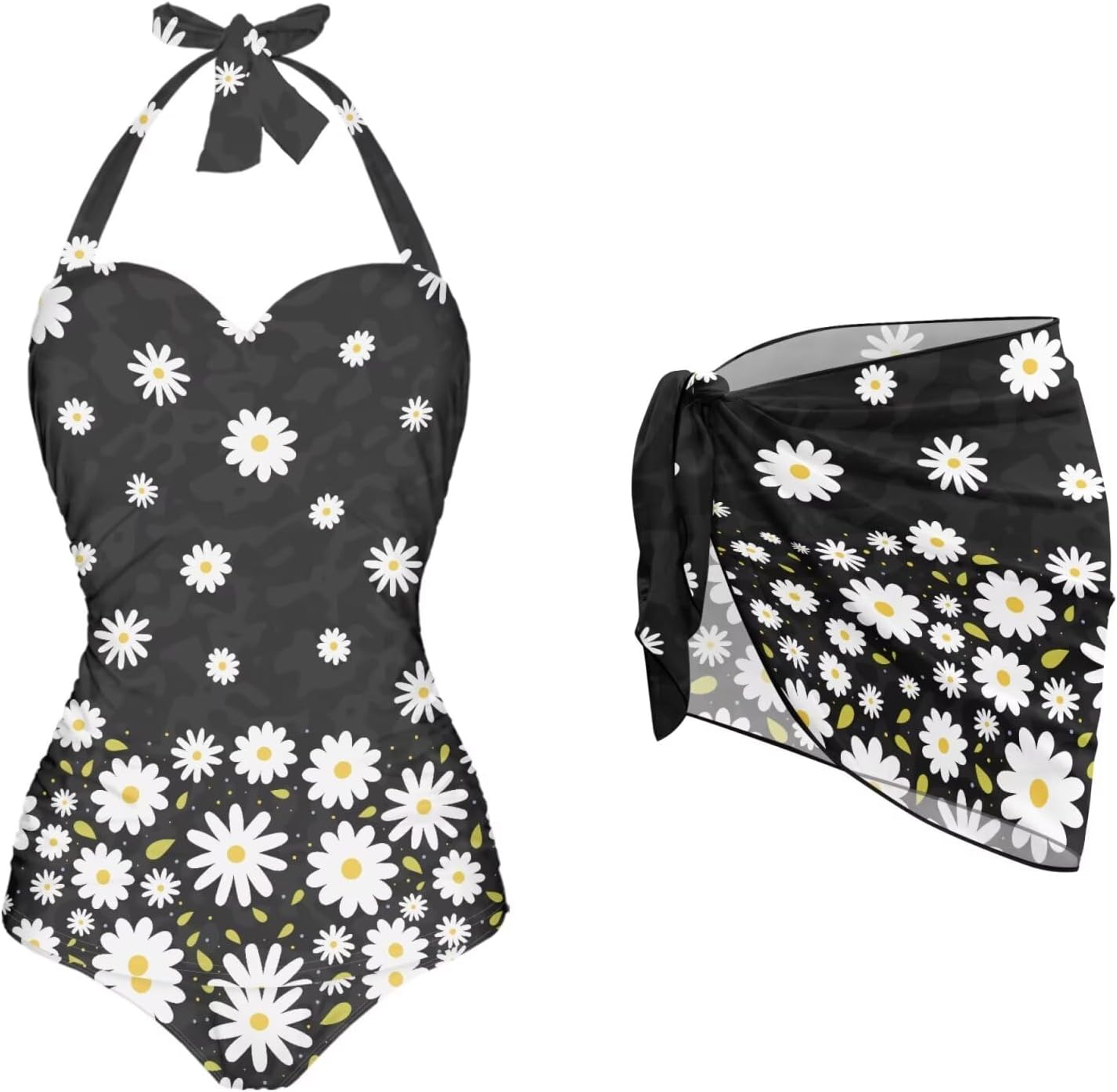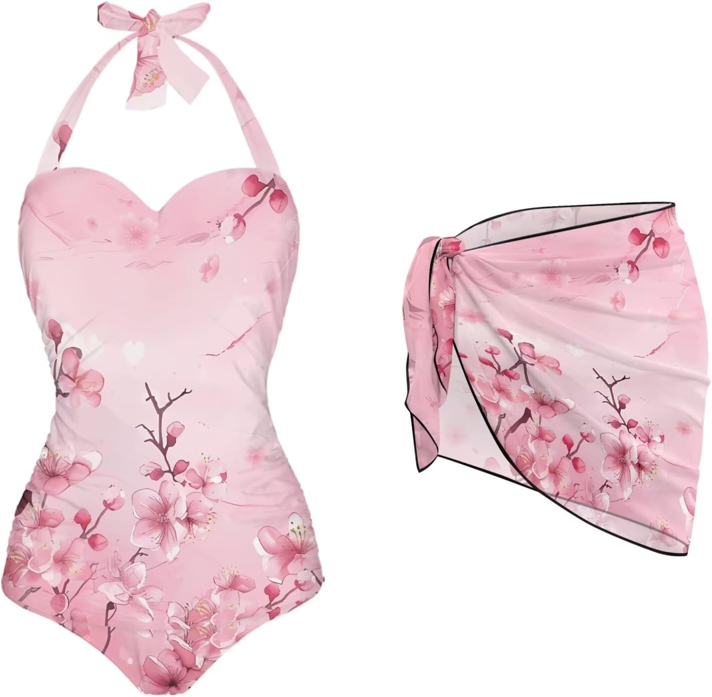 Women's One Piece Swimsuit with Sarong Cover Up Set Fashion Design This beach set comprises a one-piece swimsuit and a sarong cover-up, versatile for various occasions. Style the sarong as a skirt, chest wrap, or shawl, effortlessly matching any swimwear. The swimsuit features adjustable tie straps at the neck for a personalized fit and a double layer at the front with pleats that can cover your tummy. It also includes non-removable padding for a chic fit. Material and Size This beach set is made from a soft, stretchy polyester-spandex blend, providing durability, elasticity, and quick-drying properties. The fabric ensures a flattering, comfortable fit with lasting shape. The swimsuit is available in five sizes (S to 2XL), fitting a range of body types. The sarong cover-up is one-size-fits-all. For the best fit, please refer to our Size Chart before ordering. Versatility and Occasions This one-piece swimsuit with cover-up set is perfect for pool parties, vacations, honeymoons in Hawaii, cruises, and water parks. It also fits well with water sports, beach volleyball, and other activities. The stylish bathing suit set is an ideal gift for a wife, girlfriend, sister, mom, and friends on any special day or in daily life.