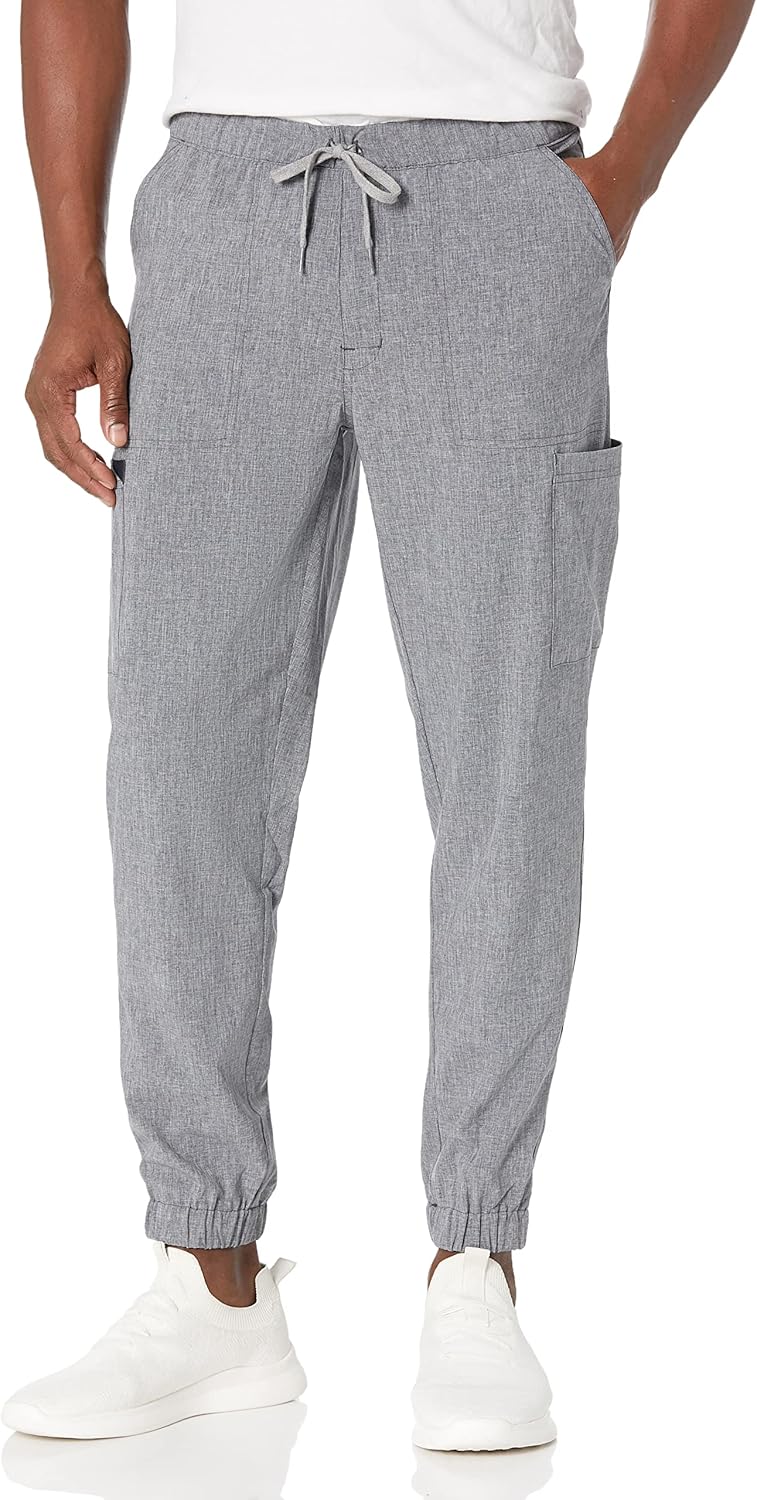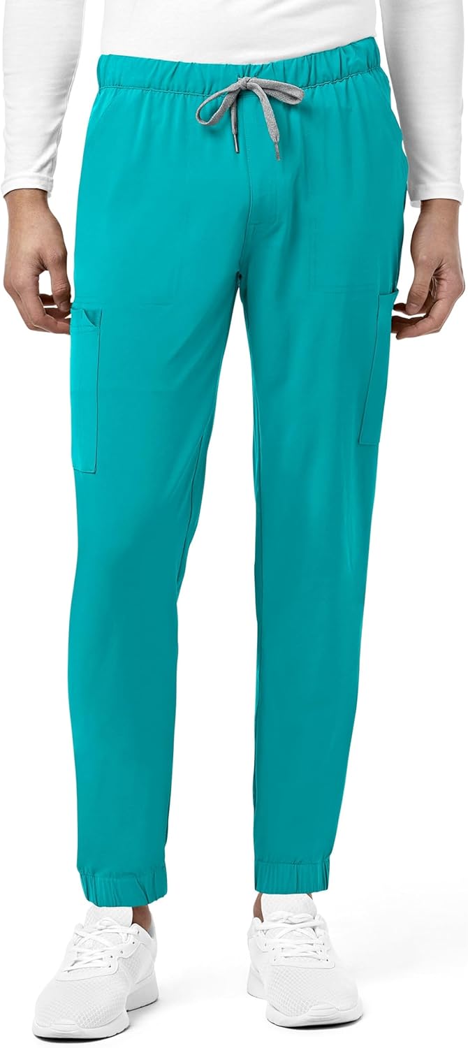Iconic athletic styling meets modern functionality in this men's jogger pant. WonderWink's exclusive RENEW fabrica has 46% PET Polyester made from recycled water bottles but has a sporty nylon hand and a subtle texture to it. We've carried the athletic styling even further with the jogger styling and the wide self-fabric elastic waistband. The hook and loop closing back pockets combine with the front slash pockets and side cargo pockets for a total of 8 pockets on these scrub pants. The dyed-to-match topstitching and other details provide great styling and functionality. You'll want a few pair of these scrub pants in your closet!