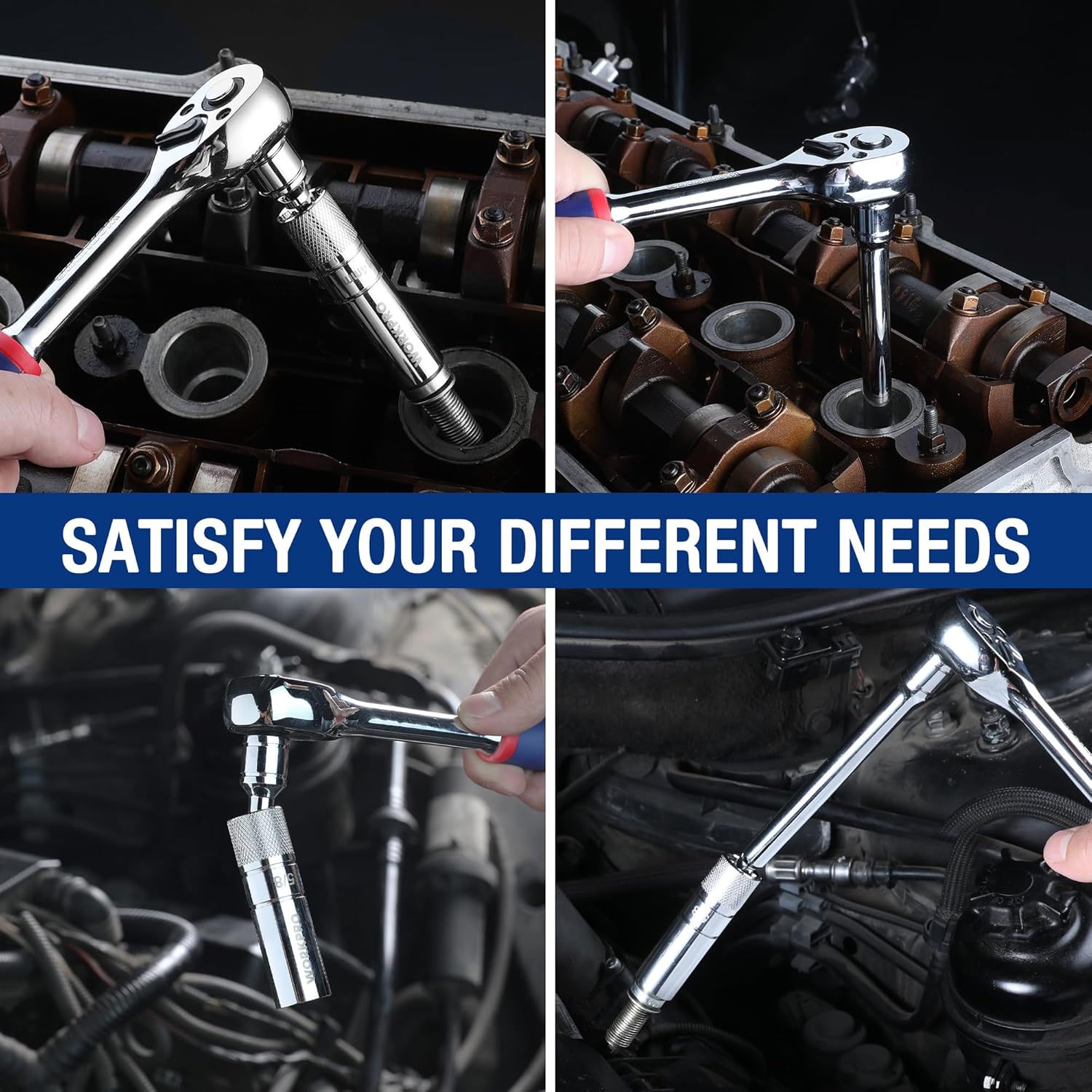 • Magnetic Core Design: Our magnetic swivel socket set is equipped with magnetic core, the magnet retains and protects the spark plug for easier installation, ensures not easy to lose the plug over time, and minimizes damage, so this spark plug socket set can provide years of reliable use
